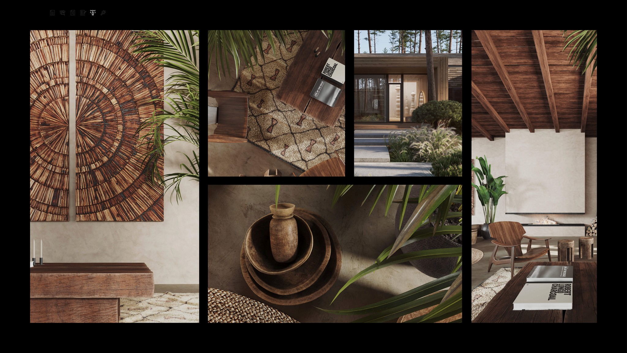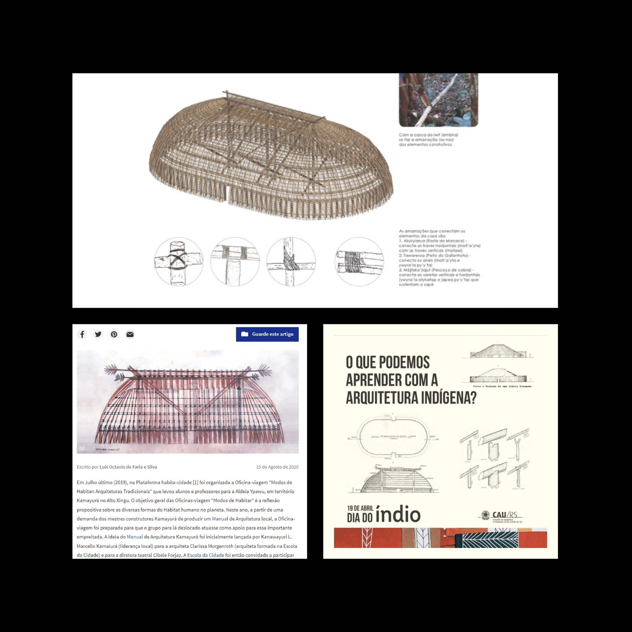 The visual identity draws from Tupi-Guarani architectural forms to create a symbol that evokes shelter, community and crafted structure. Natural textures, earthy tones and refined typography shape an aesthetic that balances elegance and organic simplicity. Patterns inspired by the landscape reinforce the connection between architecture and nature, giving the brand a calm, grounded and sophisticated presence.