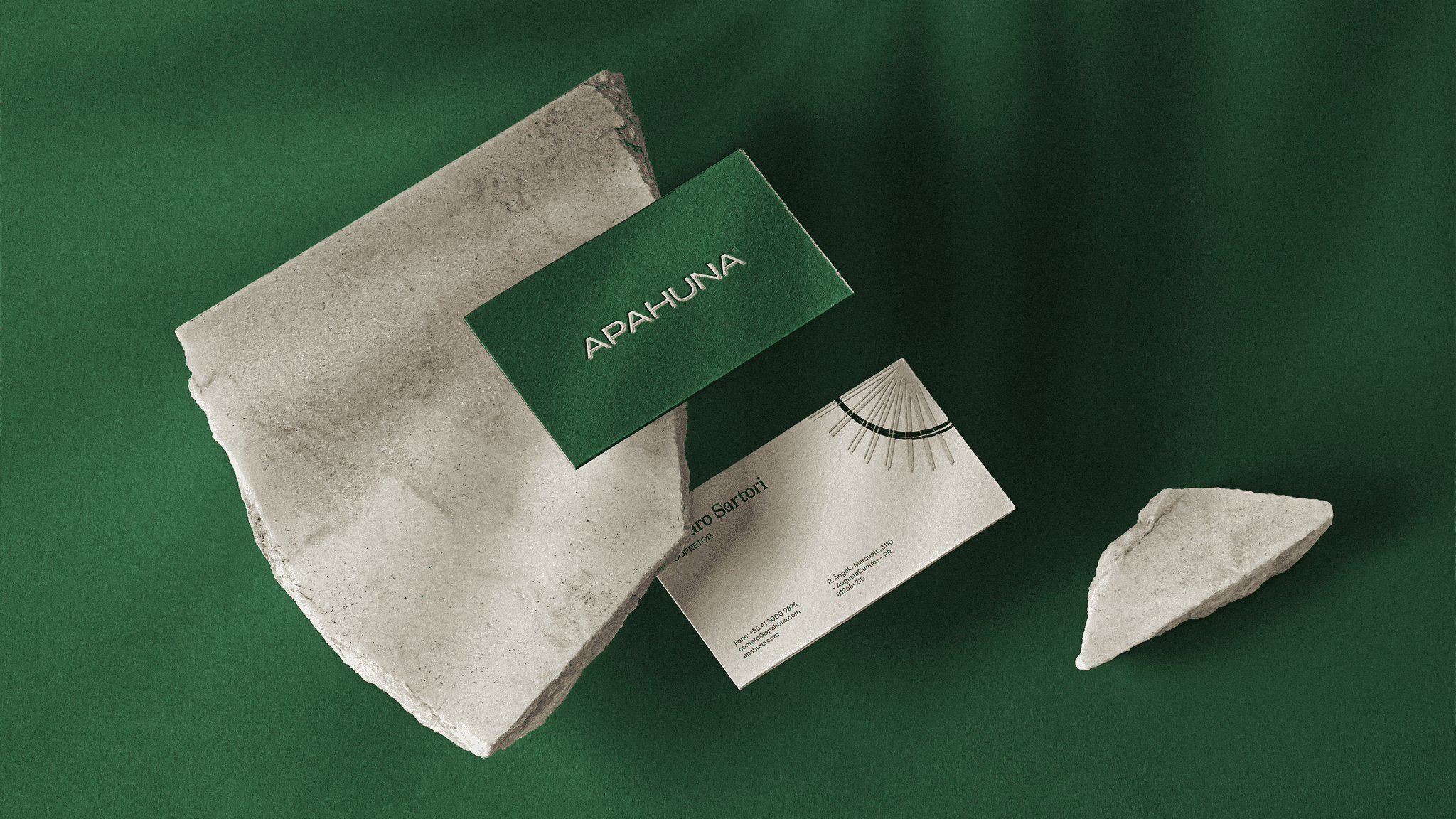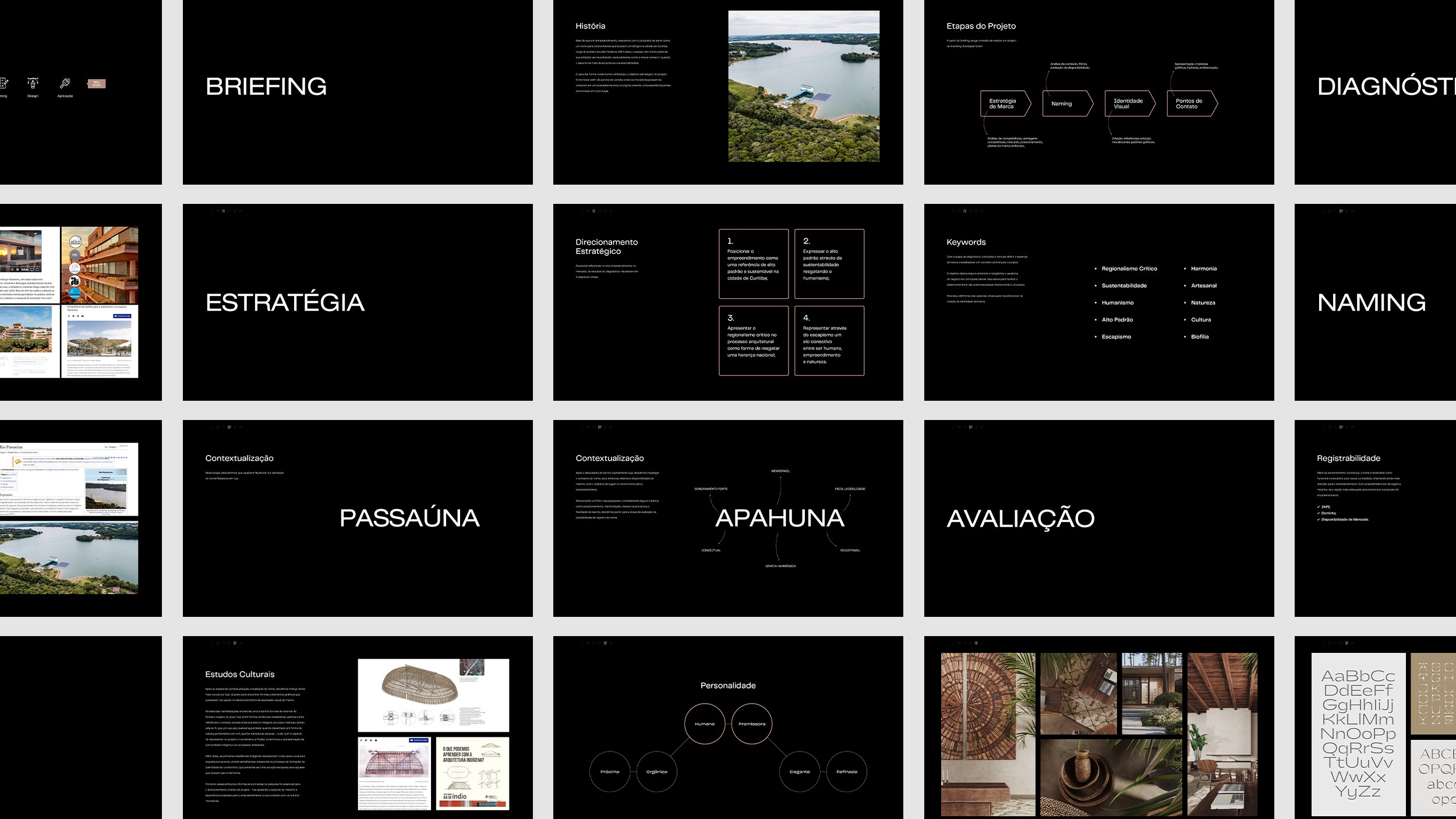 To define a name aligned with the project’s essence, we explored the cultural and geographic origins of the Passaúna region, returning to its ancestral roots. This research revealed that “Passaúna” comes from the Tupi language, and its phonetic variation — Apahuna — carries strong resonance, cultural symbolism and conceptual depth. The name is memorable, visually harmonious, easy to pronounce and fully registrable, making it both functional and evocative. Apahuna honors the land’s ancestry while embracing a contemporary identity, elevating the narrative and positioning the brand with authenticity and distinction.