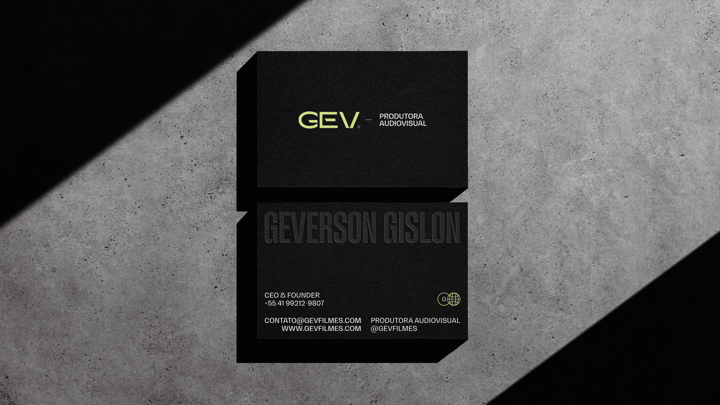 GEV Filmes was created from the desire to express bold, intense and emotionally engaging stories. The main challenge was to translate this powerful personality into a mature, functional and expandable visual identity. The brand needed to reflect energy, irreverence and presence, while also being scalable, timeless and capable of supporting the company’s growth as a professional film studio. Another important objective was to move away from a visual language that felt overly personal or subjective, allowing GEV to position itself strongly as a production company rather than just an individual creator. The solution involved a strategic process focused on personality mapping, market analysis and the development of a strong, expressive and technically consistent visual system.