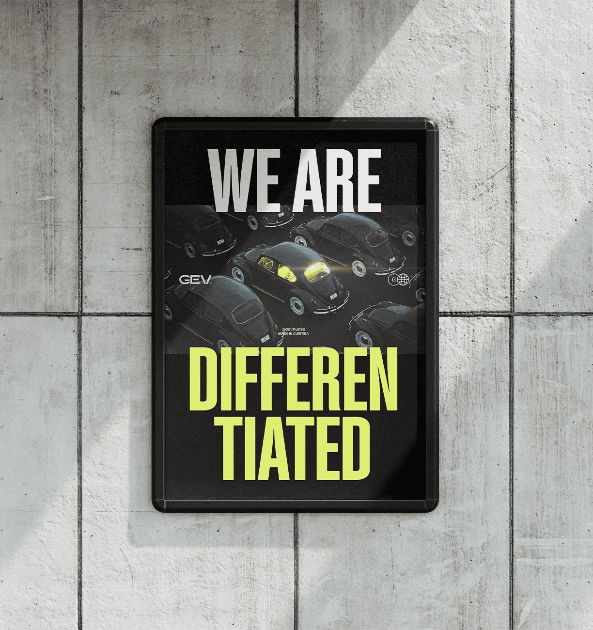 The creative concept emerges from the fusion of aesthetic intensity and emotional energy. GEV Filmes works with powerful narratives, bold attitude and a sense of constant motion — and these characteristics guided the entire visual territory. The vibrant palette, especially the acidic yellow, communicates immediacy and impact. Geometric typographies combined with hand-drawn elements express the blend of technique and spontaneity that defines the studio’s style. The concept reveals a brand that is free, youthful, irreverent and highly expressive, capable of standing out in its niche without losing authenticity.