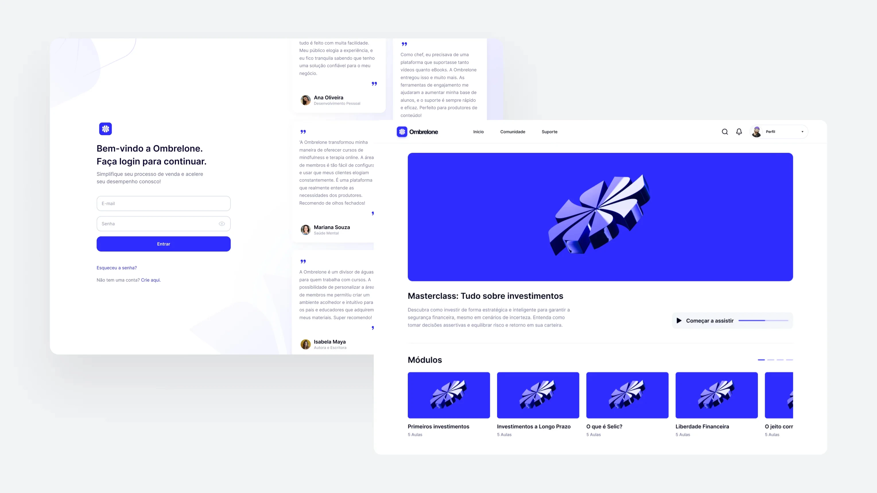 Ombrelone is a digital marketing platform designed to help creators, educators, and online sellers manage their businesses in one place. The goal was to merge tools for sales, webinars, metrics, and product management into a unified and intuitive experience. The project started as an MVP focused on speed, usability, and scalability, ensuring a cohesive brand presence across every touchpoint.