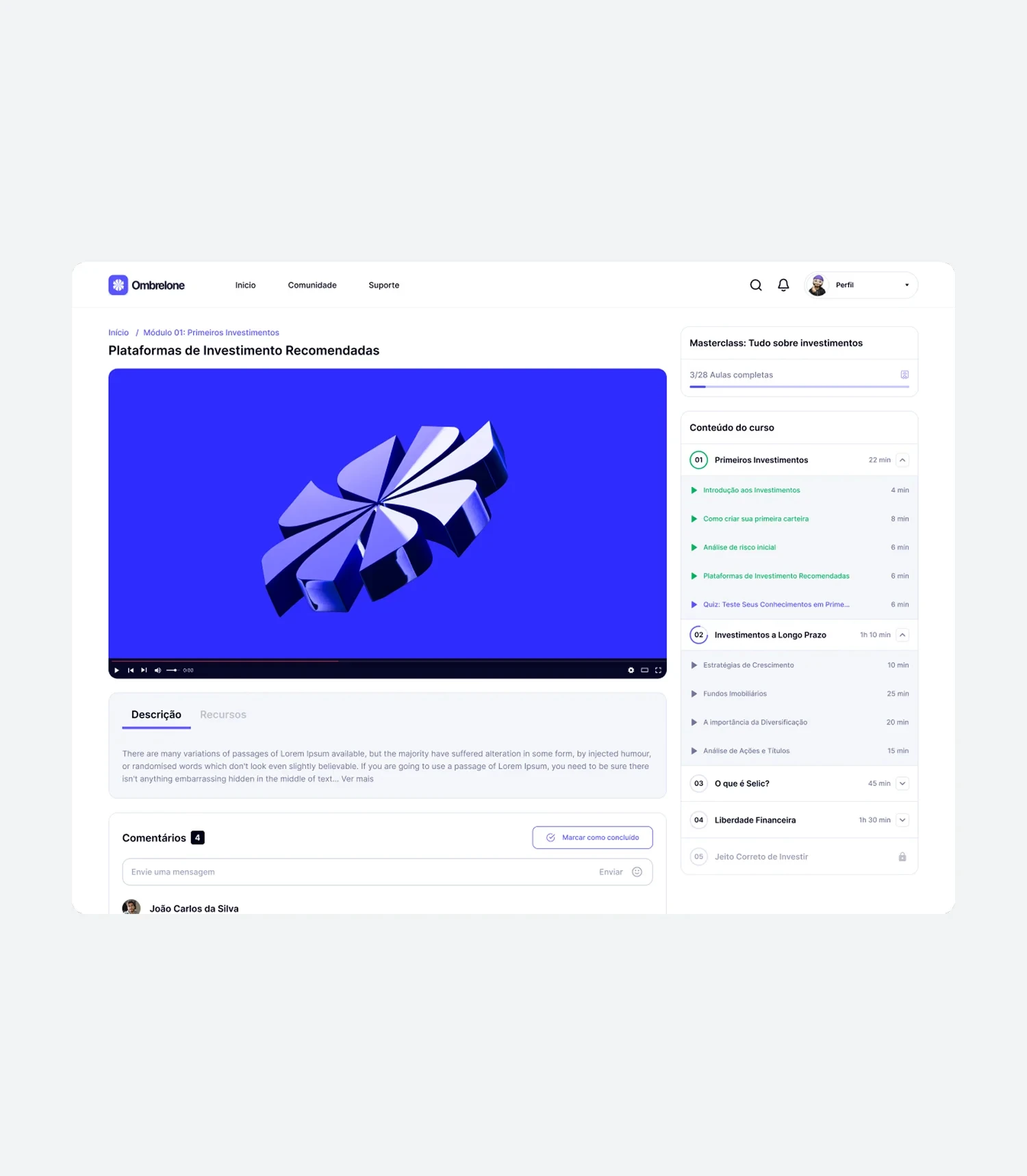 Member area optimized for course delivery, progress tracking, and interactive learning.