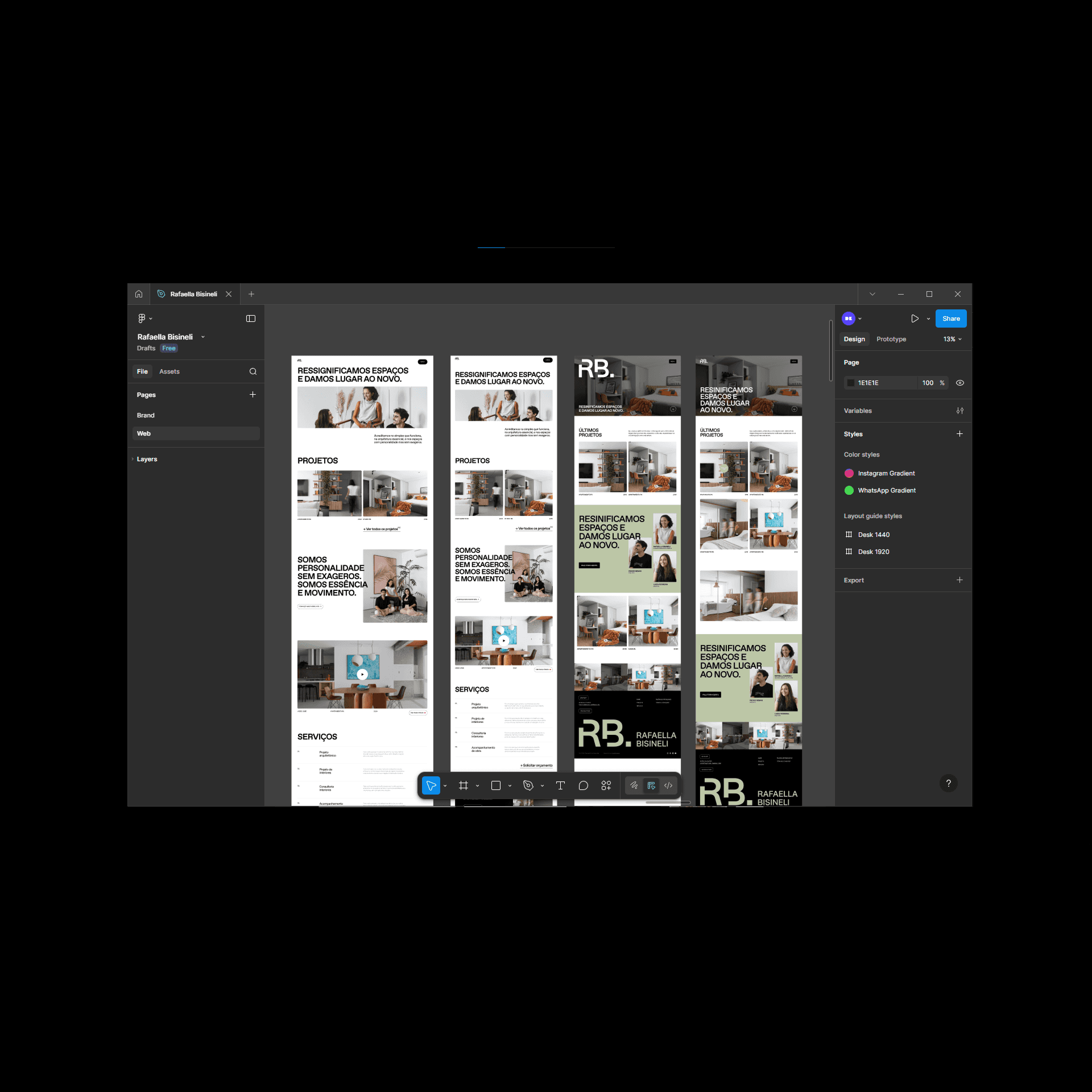 This project introduces the new visual identity for the remote architecture studio led by Rafaella Bisineli, working alongside architects Caio Alencar and Pietra Comelli. The proposal establishes a contemporary and elegant visual system designed to strengthen the studio’s collaborative approach and its commitment to transforming clients’ stories into meaningful spatial experiences. The material defines brand personality, color palette, typography, and moodboard, providing a consistent foundation for future applications across all communication touchpoints.