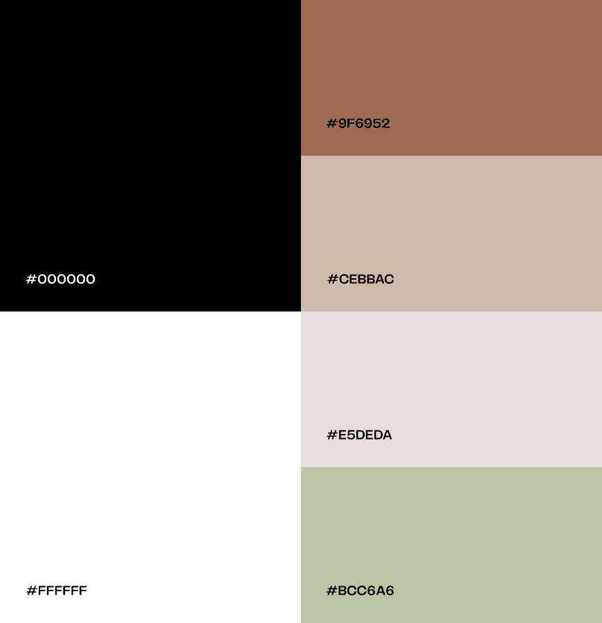 The visual identity employs a chromatic system that balances warm neutrals — such as sand, kraft, and soft browns — with organic greens and deep black, reinforcing elegance, stability, and a connection to natural materials. To ensure clarity and performance, the typography combines Favorit for headings and Manrope for body text, resulting in a modern, readable, and cohesive communication style. The system is minimalistic, versatile, and fully scalable, supporting digital, printed, and institutional applications while solidifying a contemporary and consistent brand presence.