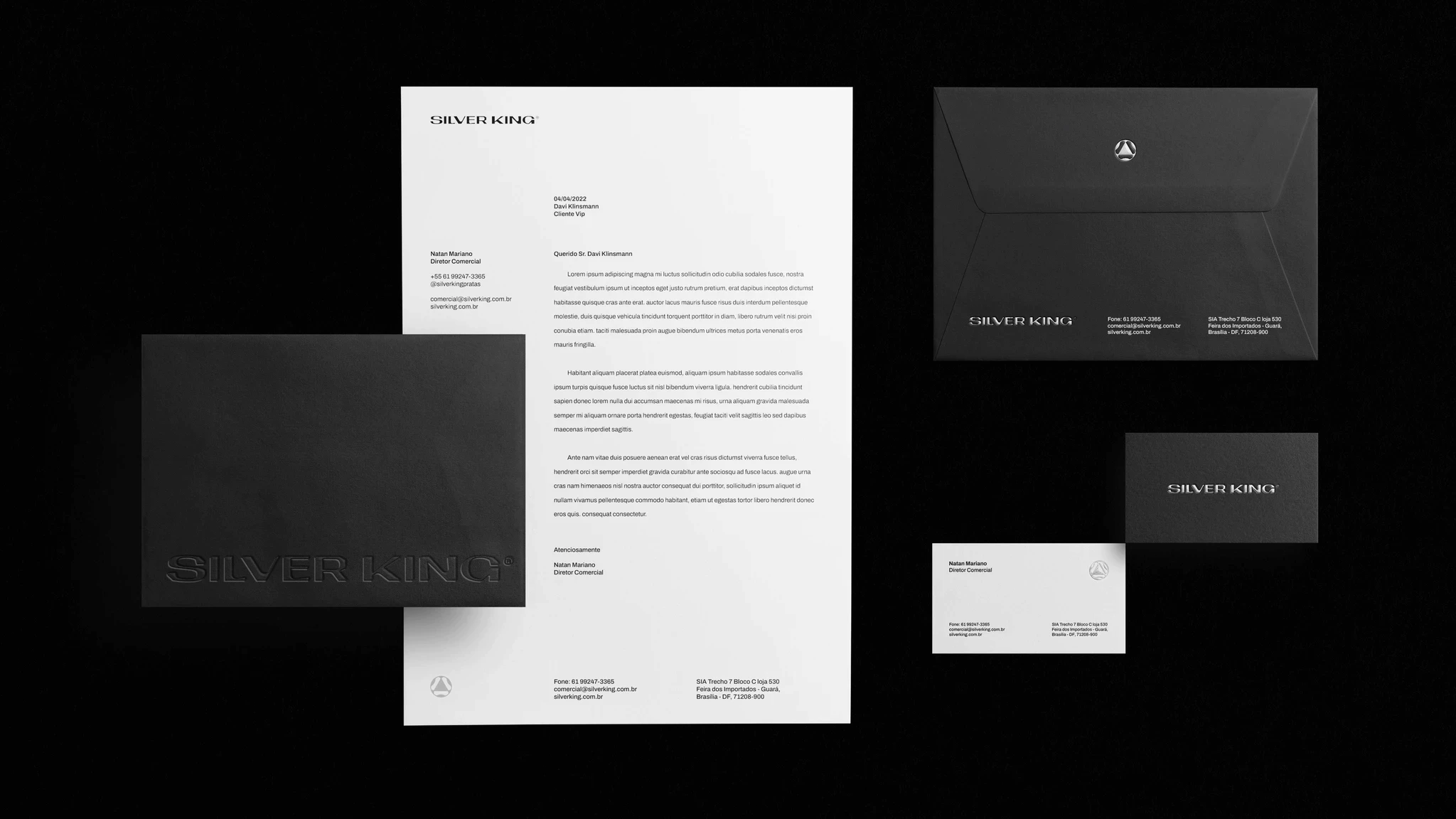 The visual identity was developed following an essentialist, objective, and strategic approach. The symbol was constructed using a modular grid, prioritizing simplicity, recognition, and practical applicability on silver surfaces. The color palette, based on black, white, and neutral tones, conveys power, elegance, and modernity. The carefully selected typography reinforces a firm, contemporary, and confident tone of voice, consolidating a coherent, strong, and easily recognizable visual identity.