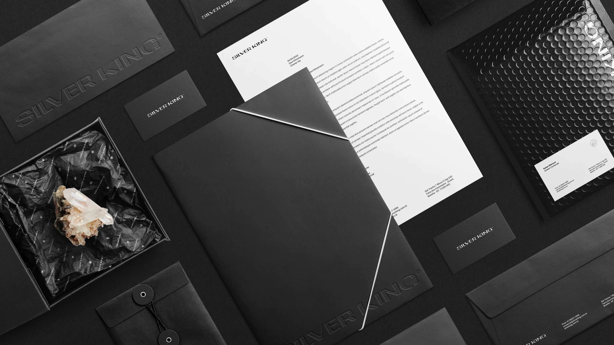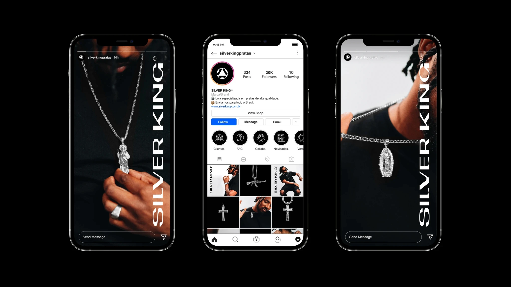 Silver King is a silver jewelry brand with in-house manufacturing, aimed at men who identify with an urban and contemporary style. Inspired by rap culture and Brazilian funk, the brand seeks to strengthen a sense of community and belonging, while also aspiring to become a national reference in silver jewelry. The project aimed to build a strong, original, and sophisticated visual identity, capable of positioning the brand as bold, authentic, and ready to grow.